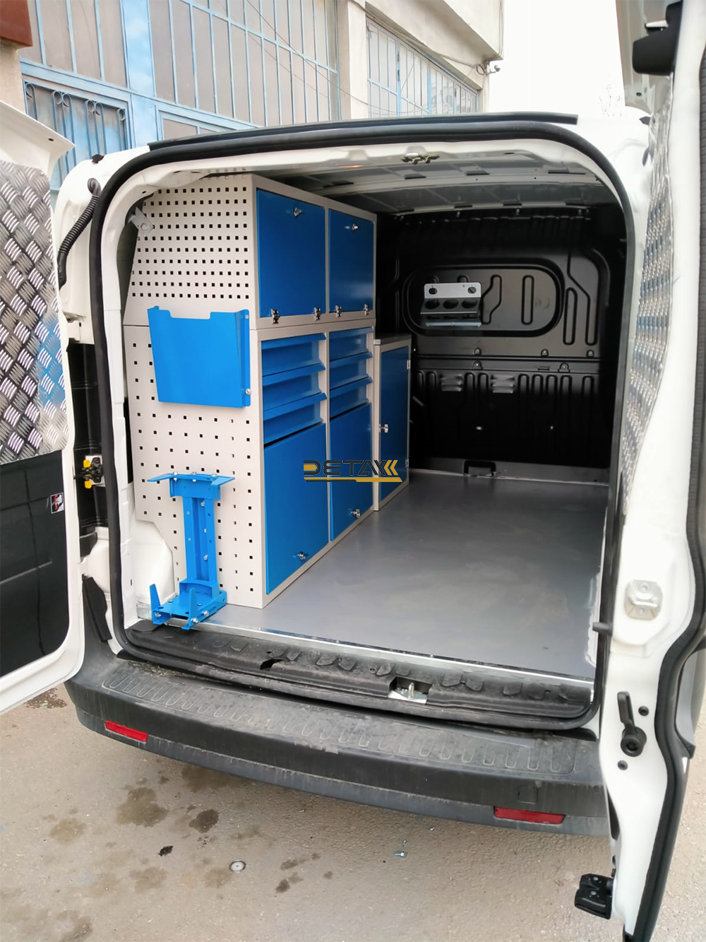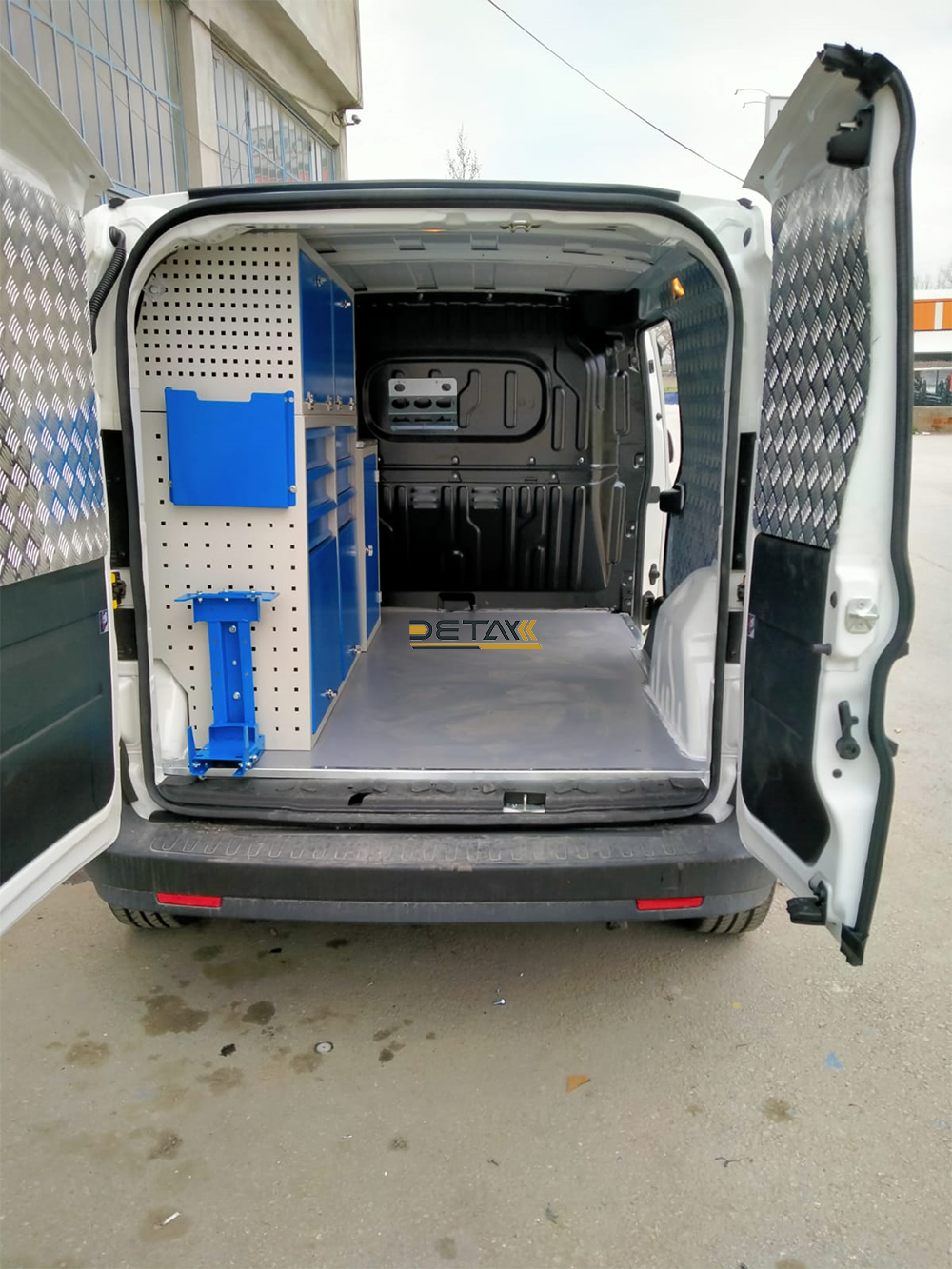 The interiors of your Doblo Maxi vehicles that you use for maintenance and repair are equipped with modular shelves, drawer cabinets and work benches, and they are transformed into a mobile service vehicle, a kind of mobile workshop.