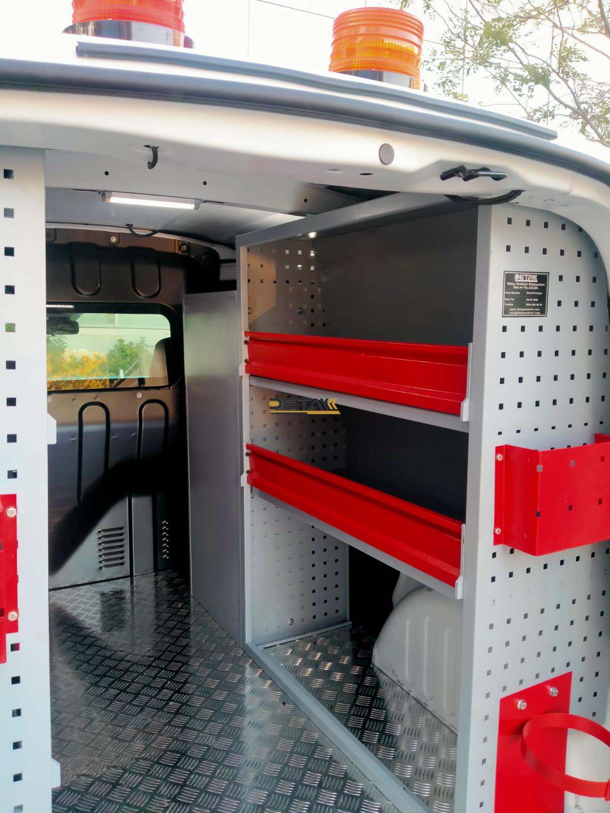 Bakım onarım için kullandığınız Renault Kangoo Doğalgaz bakım araçlarınızın iç kısımları modüler raf çekmeceli dolap ve çalışma tezgahları ile donatılarak gezici bir servis aracına bir nevi seyyar atölyeye dönüştürülmektedir.