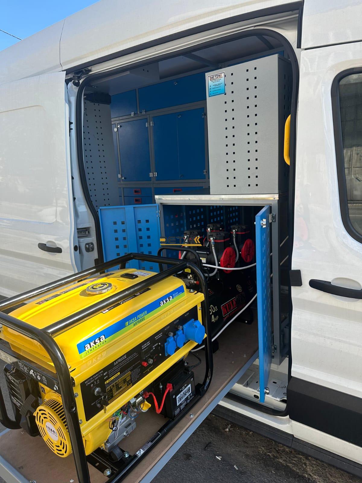 İsteğe göre araç içine kompresör,jeneratör montajları yapılmaktadır.