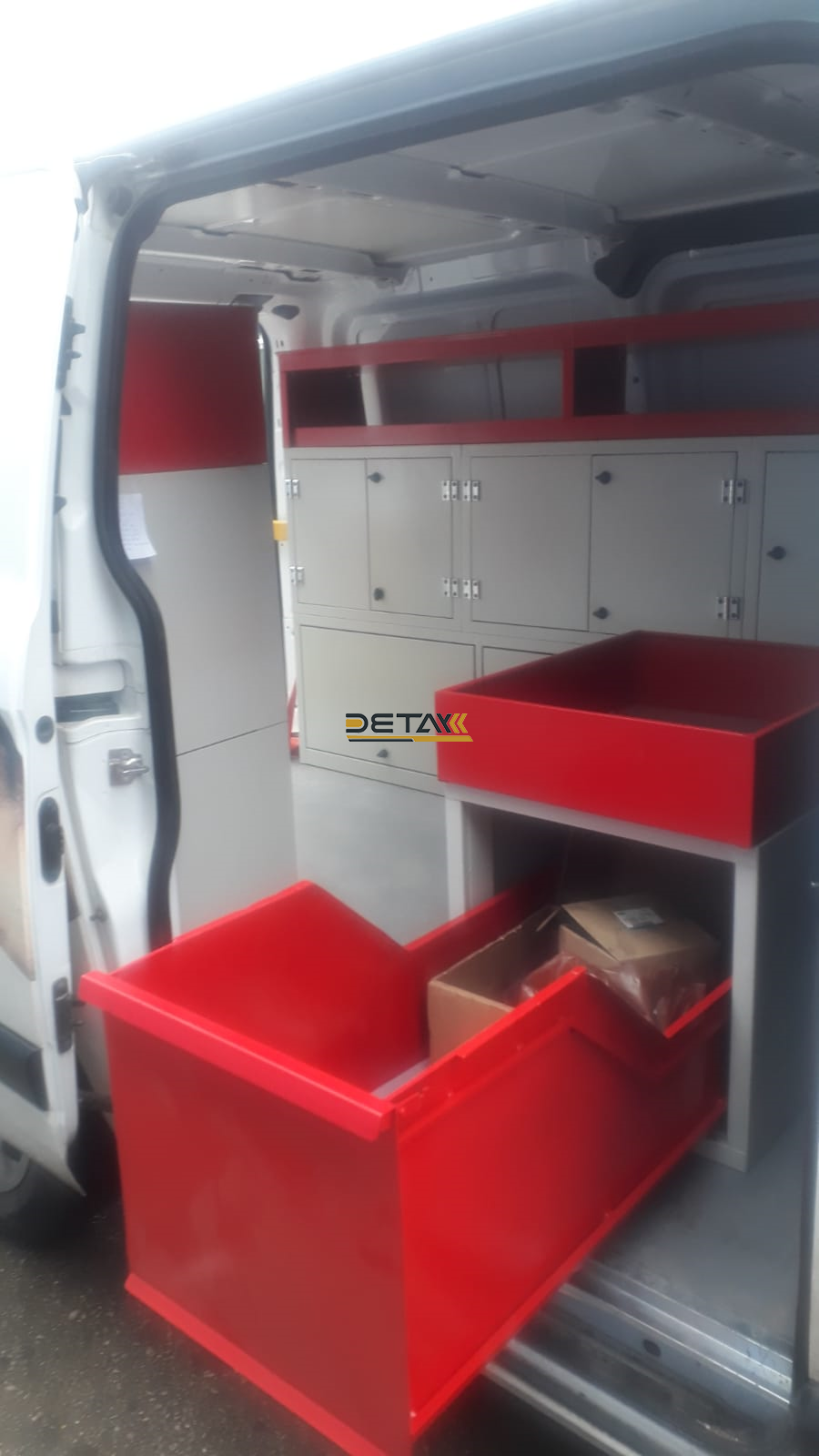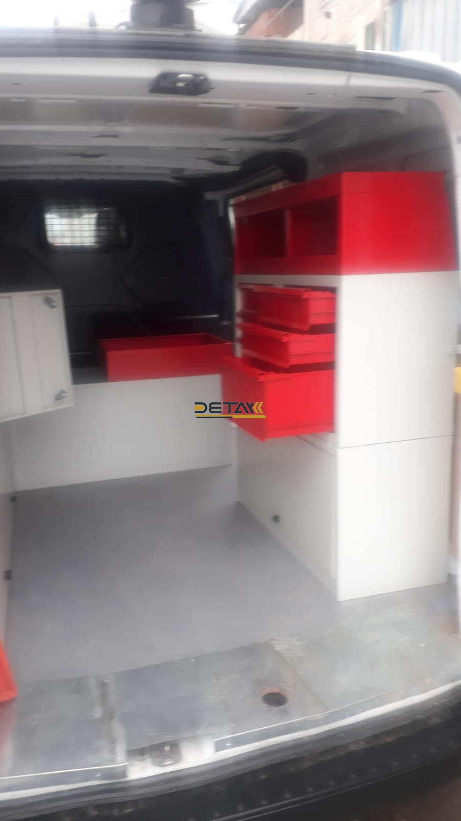 The interiors of your Ford Transit Custom vehicles, which you use for maintenance and repair, are equipped with modular shelves, chests of drawers and work benches, and they are transformed into a mobile service vehicle, a kind of mobile workshop.