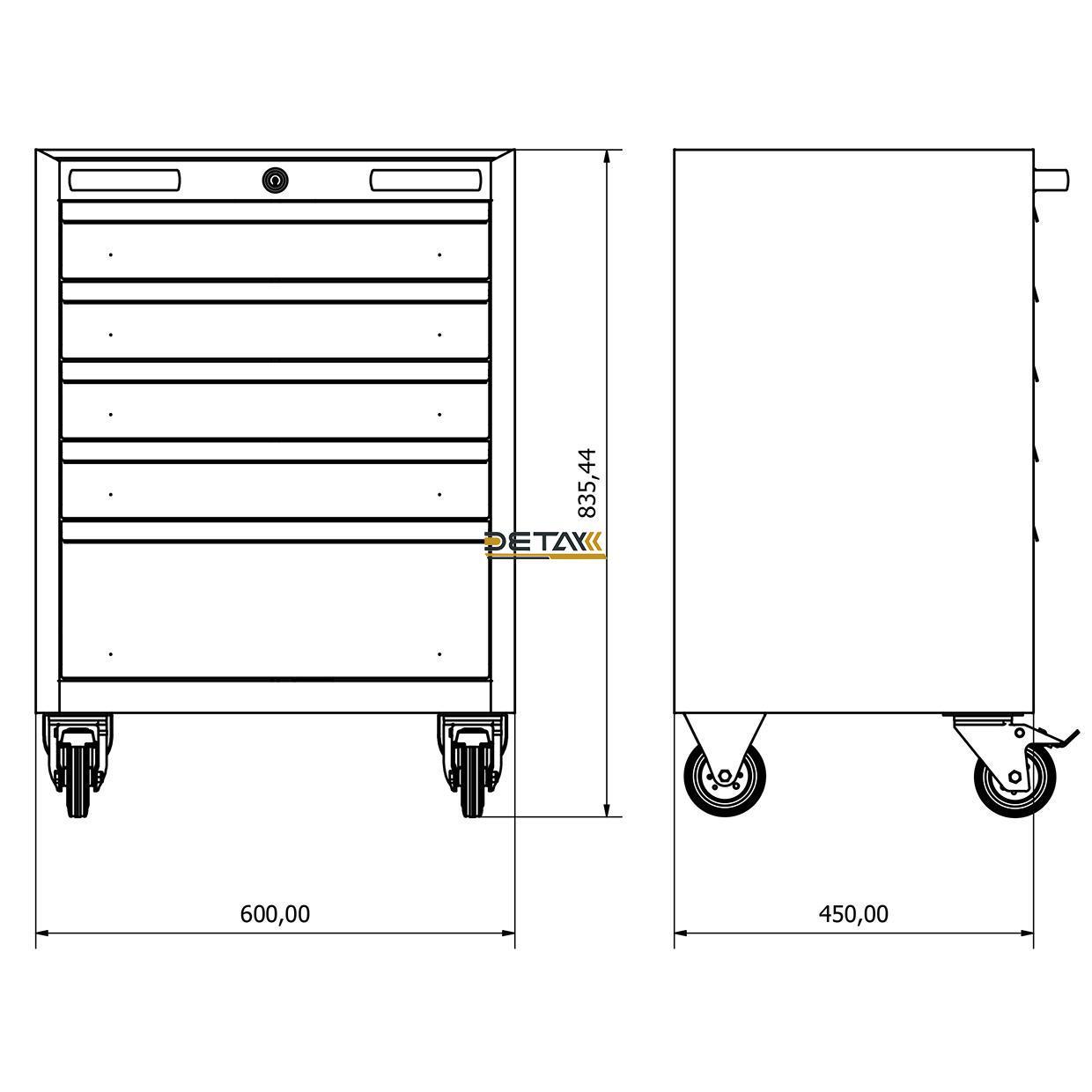 1 drawer of 200 (internal dimension: H170xW400xD480mm)