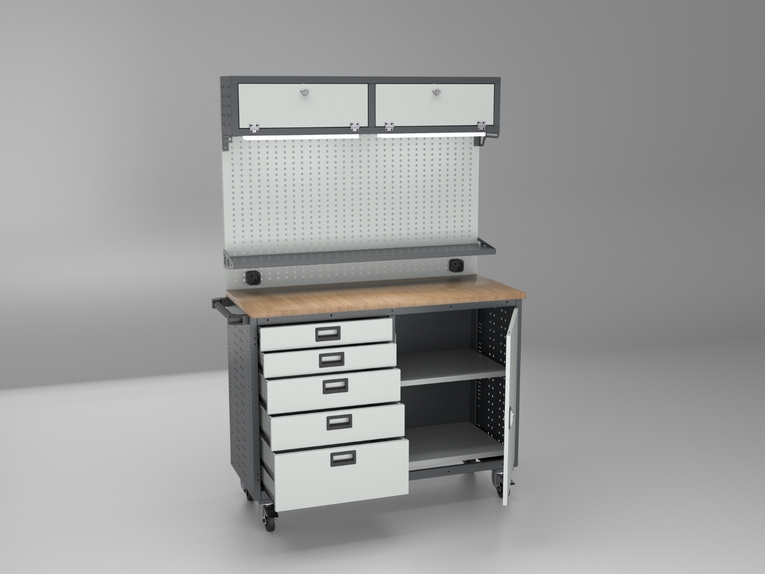 Work Surface: Offers additional workspace with a workbench-type top surface