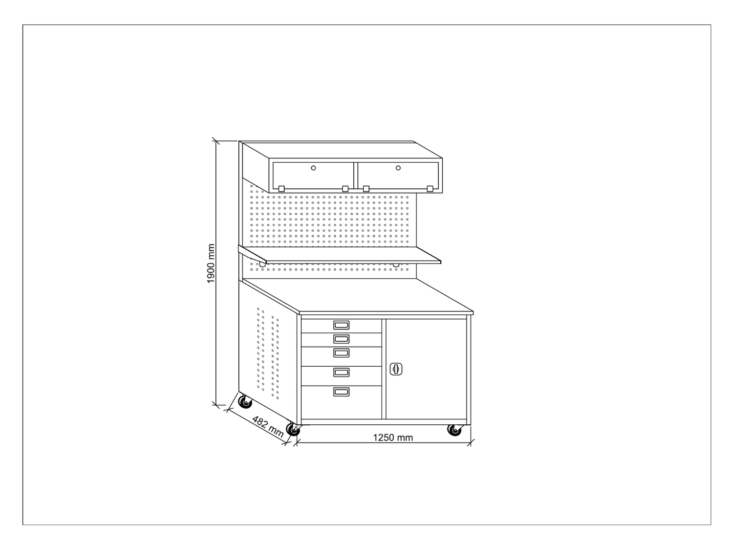 Dimensions: H: 1900 mm / W: 1250 mm / D: 482 mm