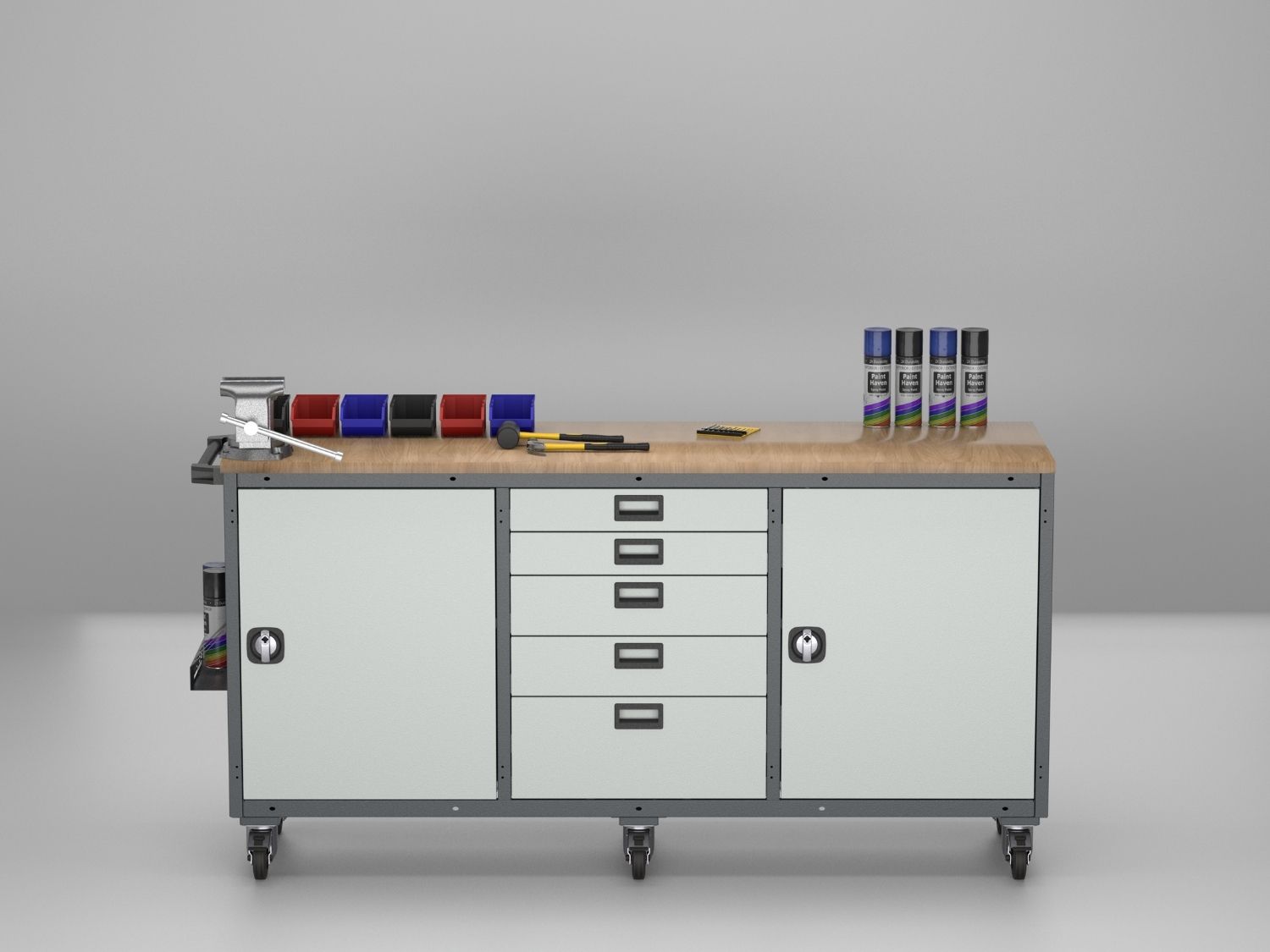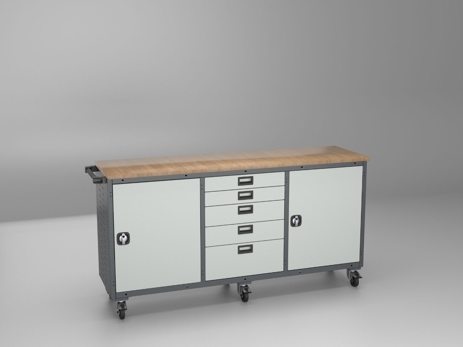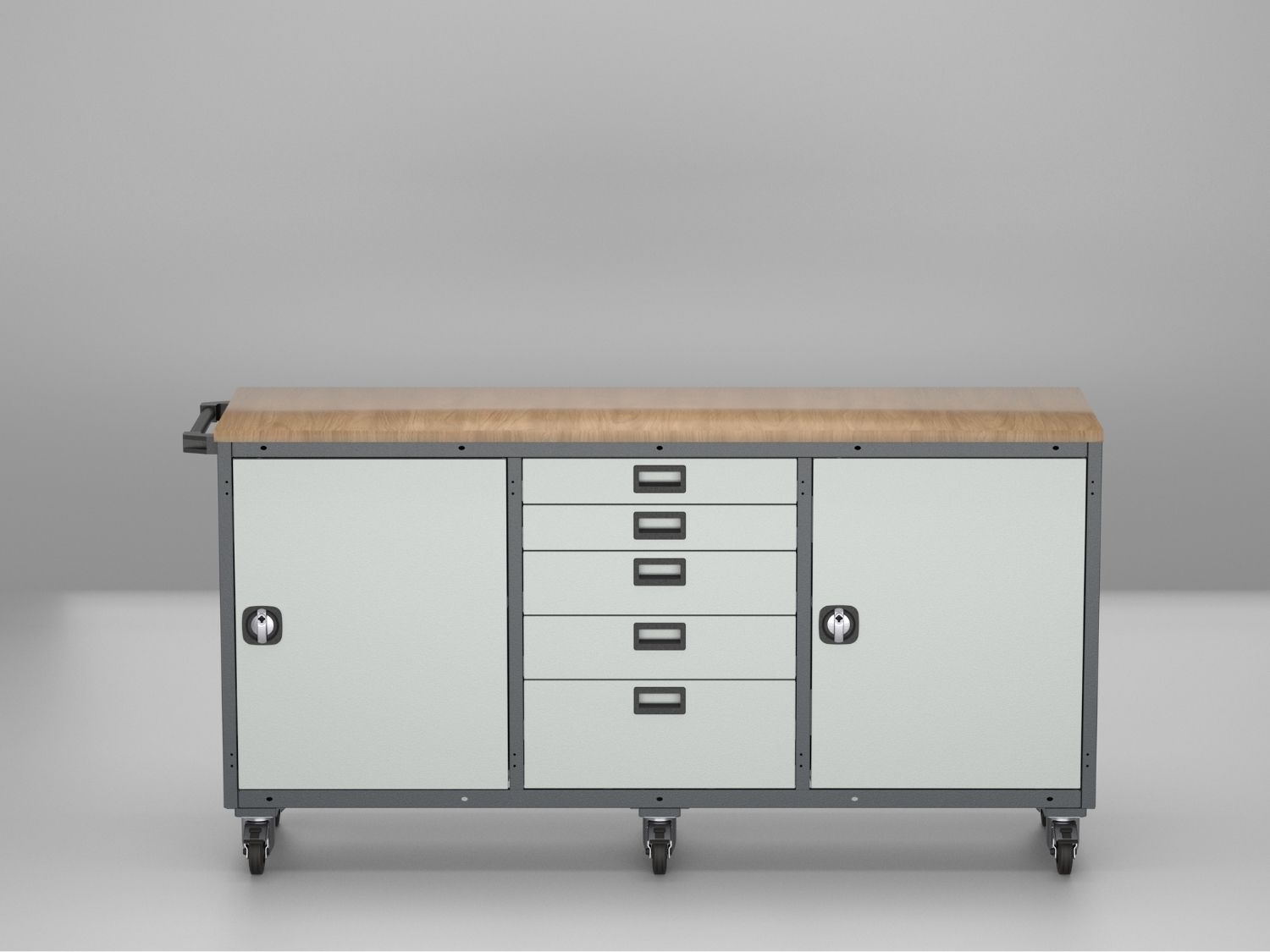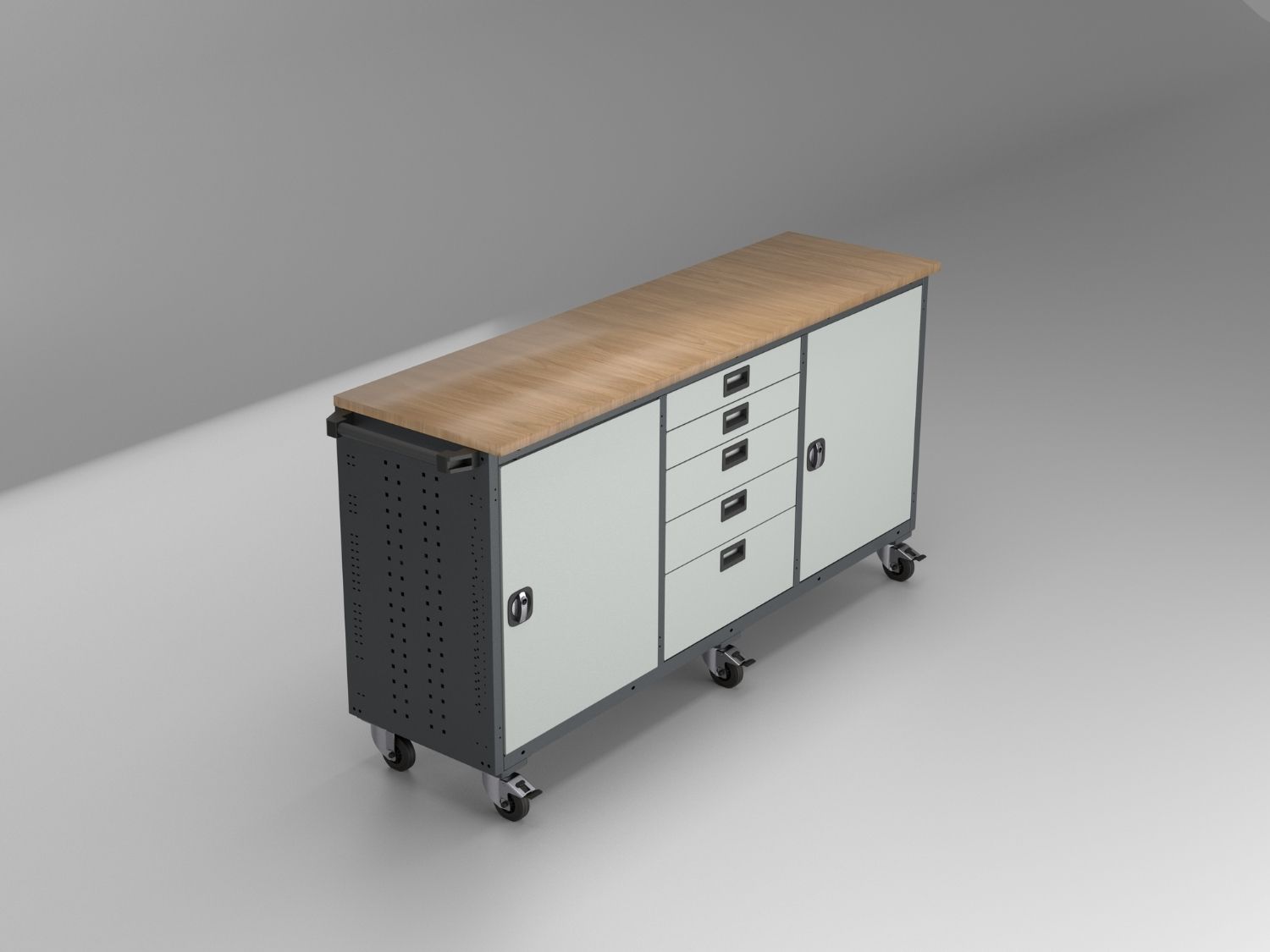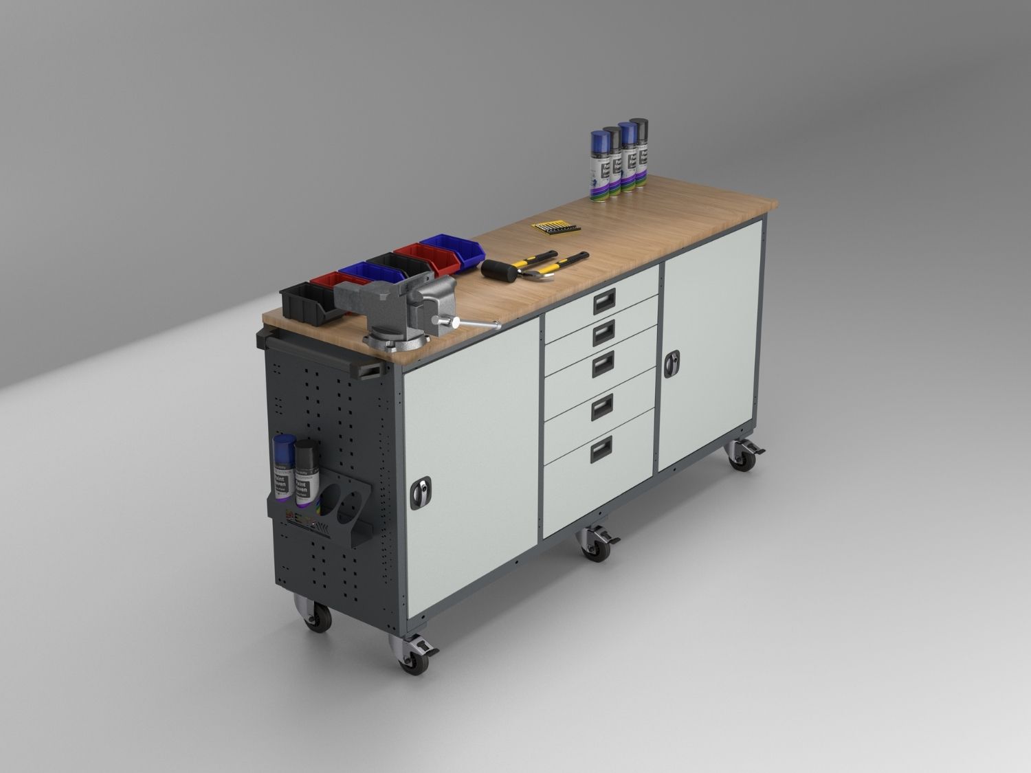 Its DKP sheet metal body and electrostatic powder coating provide high resistance against harsh working conditions. Thanks to its workbench-type design, it combines both a working surface and storage area, optimizing space usage. Its modular structure offers flexible usage to adapt to different needs.