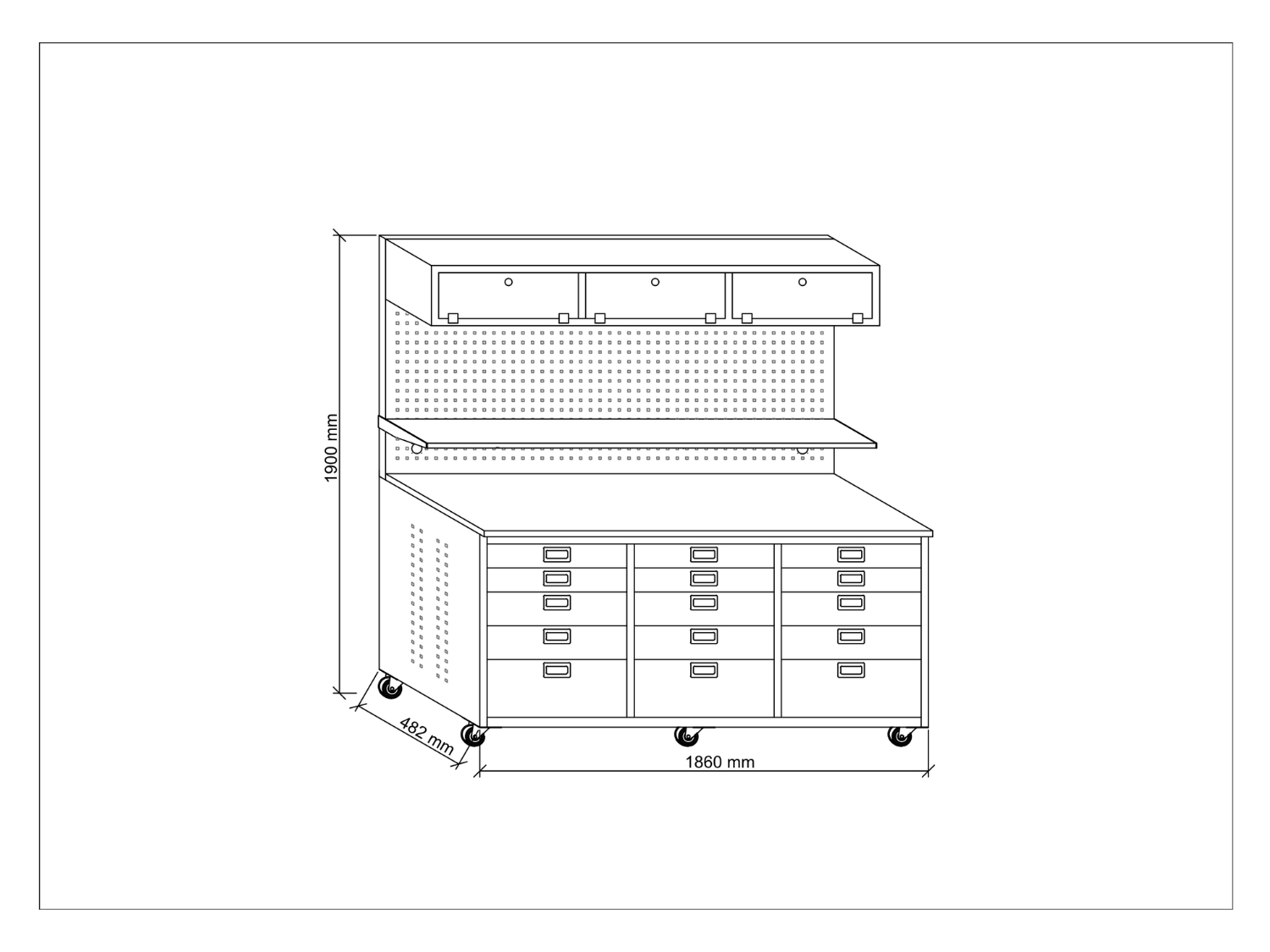 Dimensions: H: 1900 mm / W: 1860 mm / D: 482 mm
