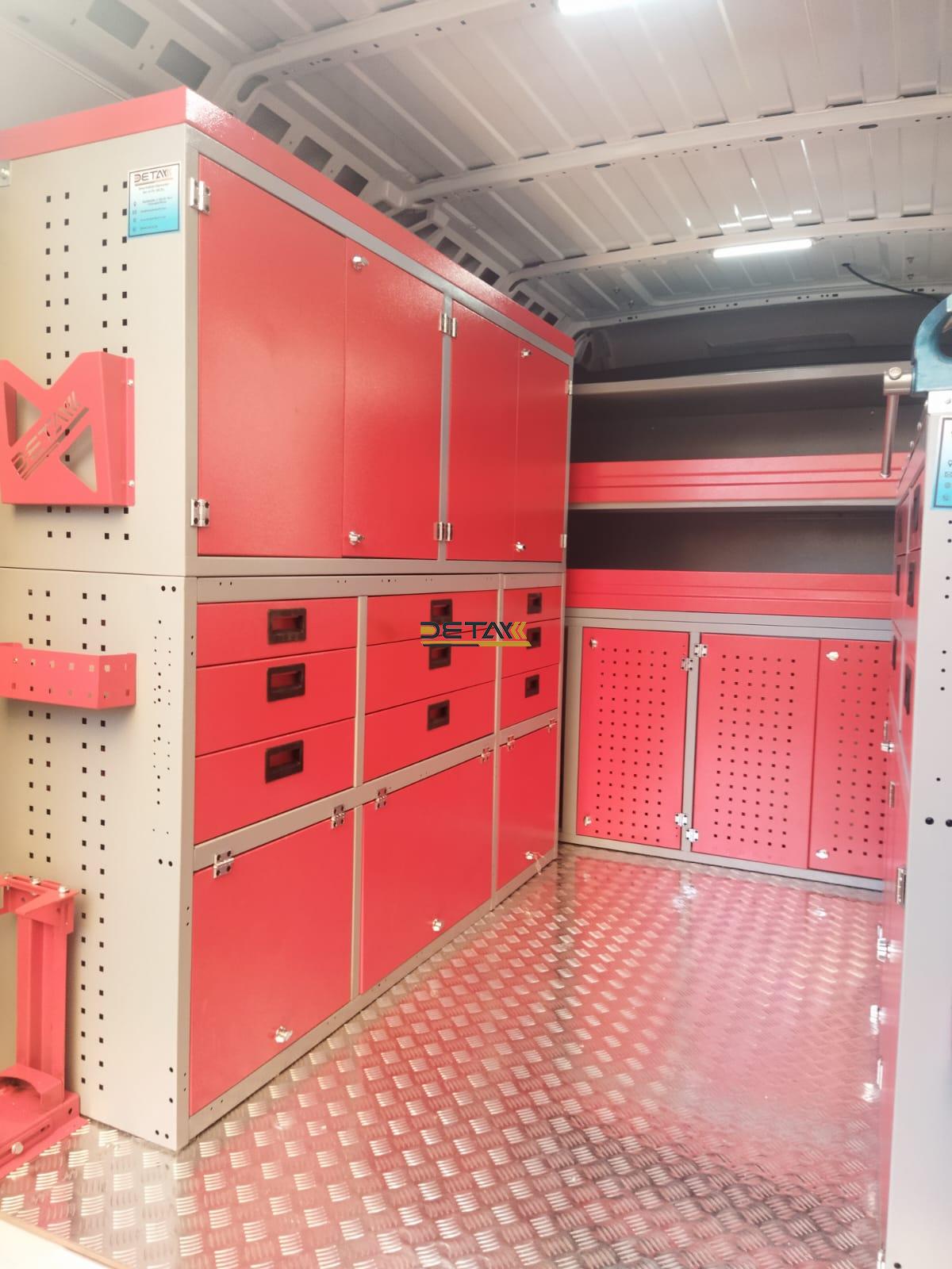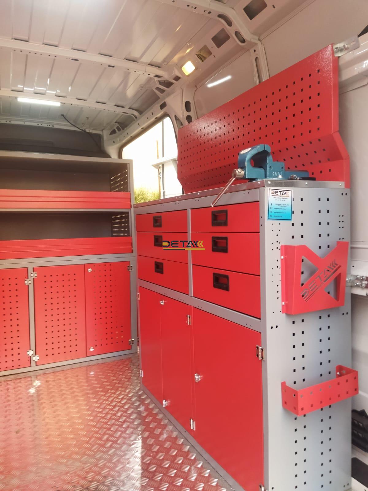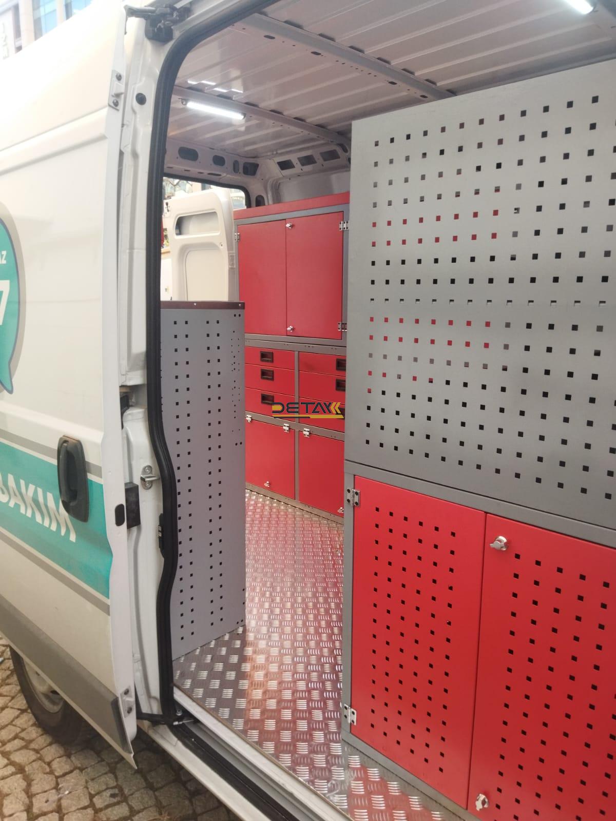 The interiors of your Fiat Ducato Natural Gas Maintenance and Repair Vehicle, which you use for maintenance and repair, are equipped with modular shelves, chests of drawers and work benches, and they are transformed into a mobile service vehicle, a kind of mobile workshop.