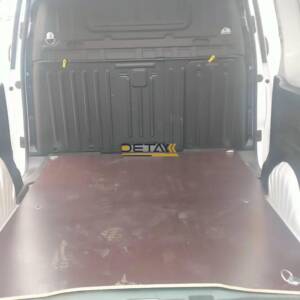 LED lighting can be mounted on the vehicle floor, optionally with mdf or aluminum coating on mdf, on the interior walls of the vehicle, in the section where there are aluminum clad cabinets and shelves.