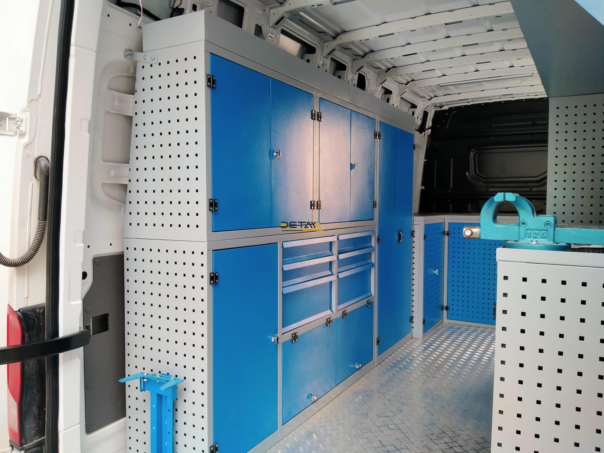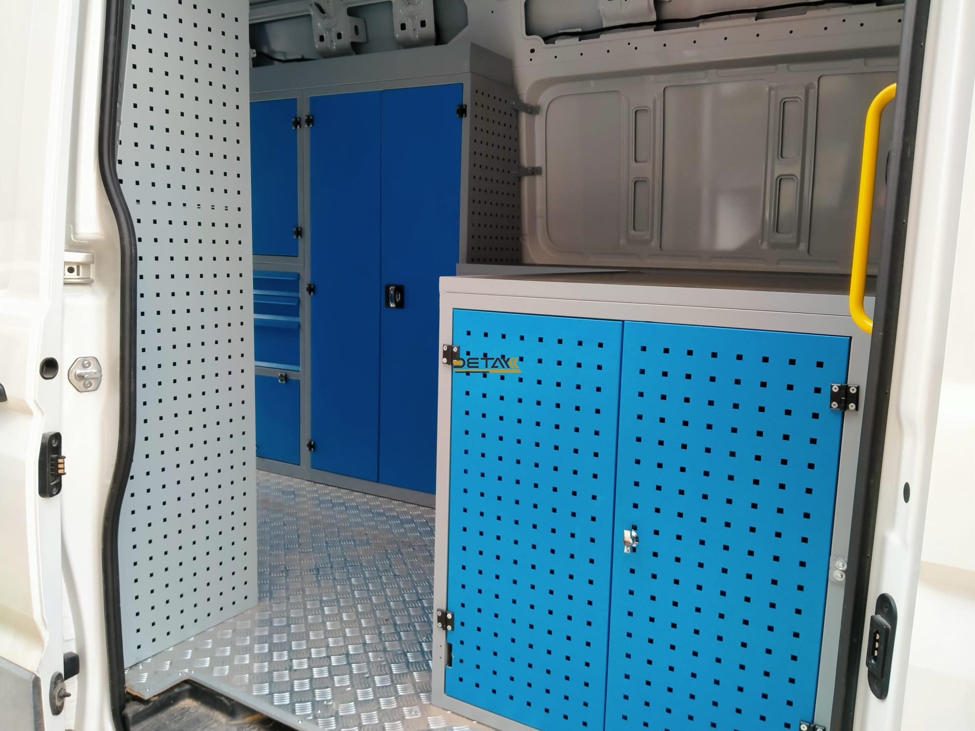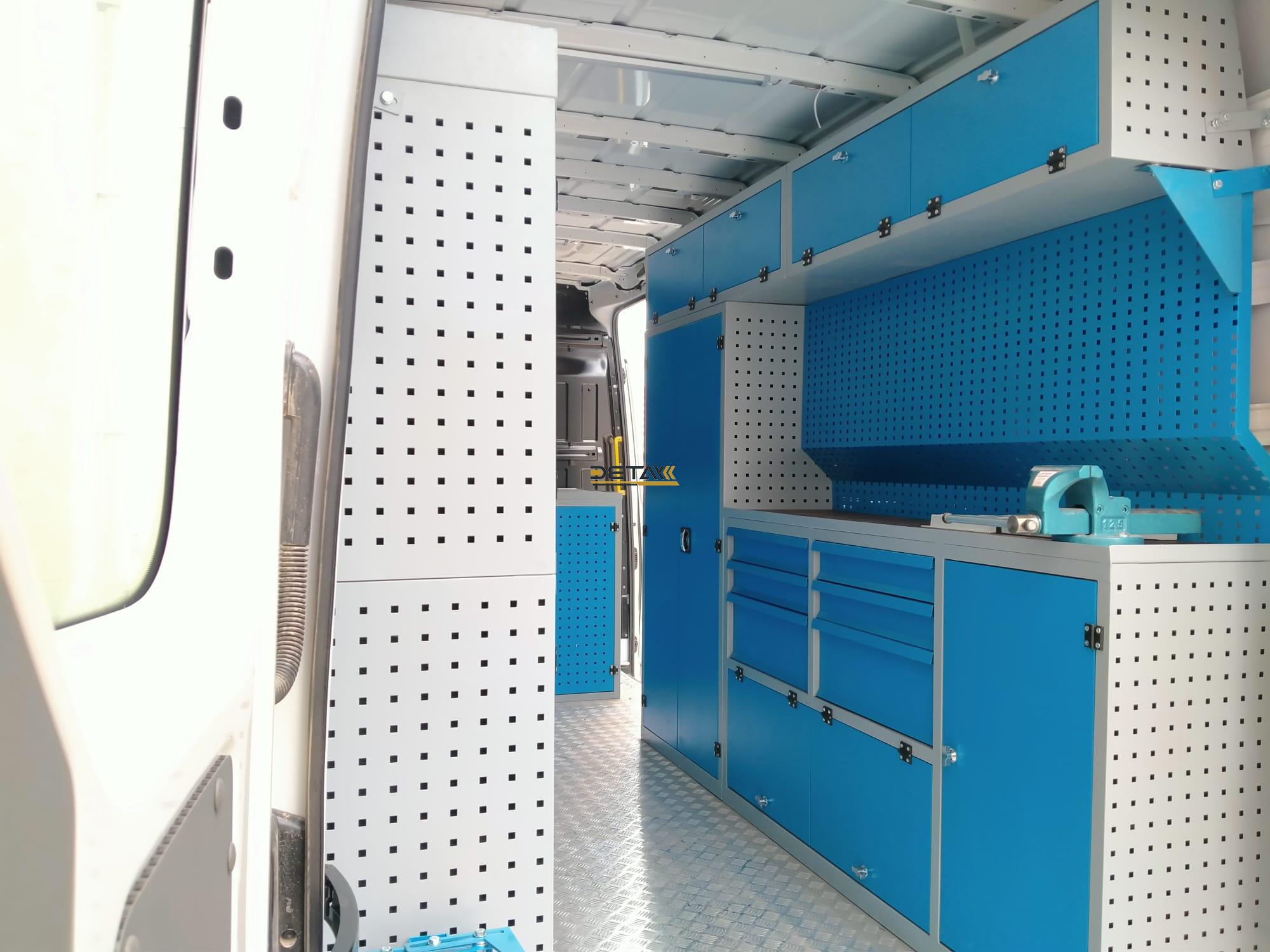 The interiors of your Volkswagen Crafter İnterior Equipment İnterior Equipment vehicles, which you use for maintenance and repair, are equipped with modular shelves, chests of drawers and work benches, and they are transformed into a mobile service vehicle, a kind of mobile workshop.
