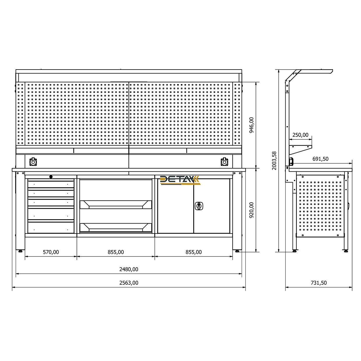 - H950xW2480 mm delikli pano ölçüsü.