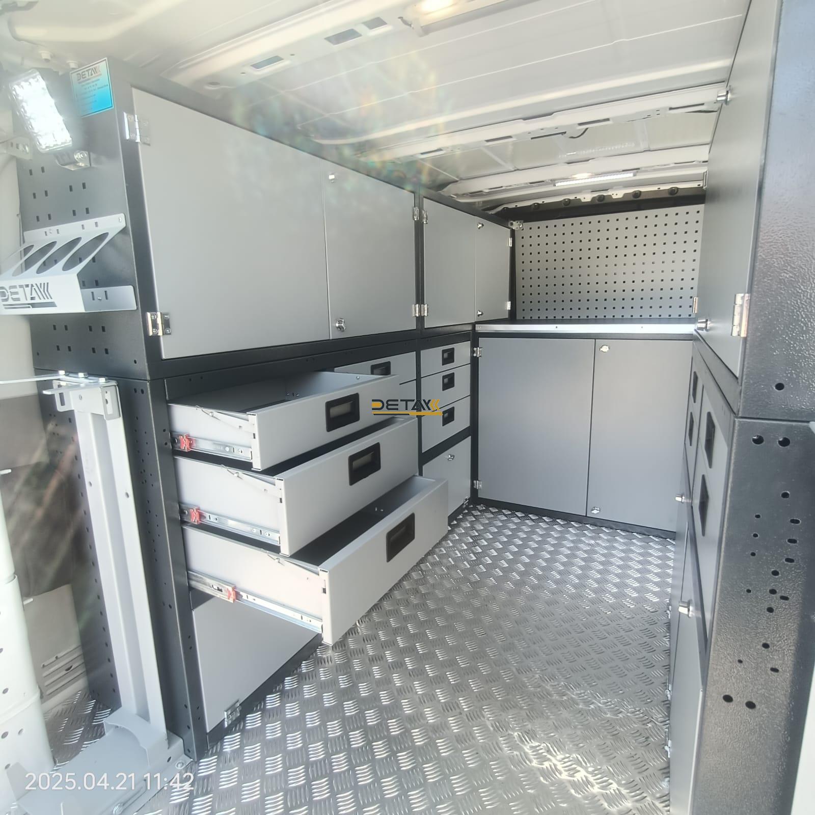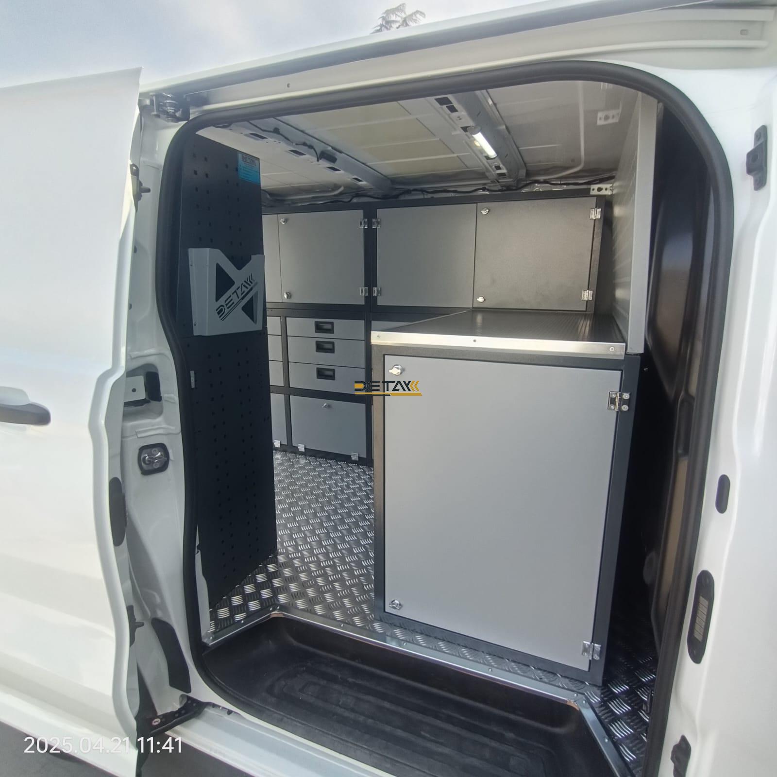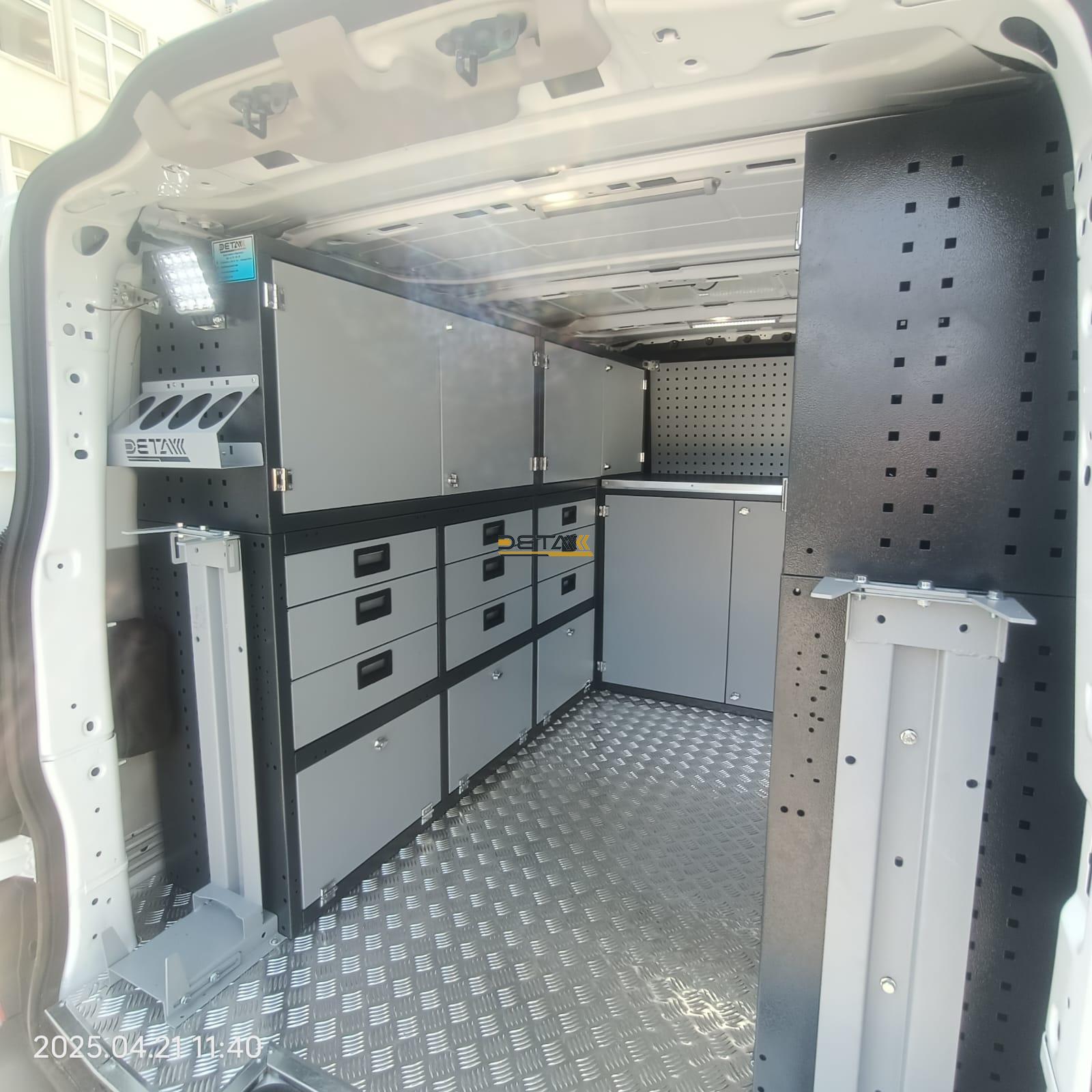 Bakım onarım için kullandığınız Ford Custom Mobil Servis Aracı (Türk Telekom)’nın iç kısımları modüler raf çekmeceli dolap ve çalışma tezgahları ile donatılarak gezici bir servis aracına bir nevi seyyar atölyeye dönüştürülmektedir.