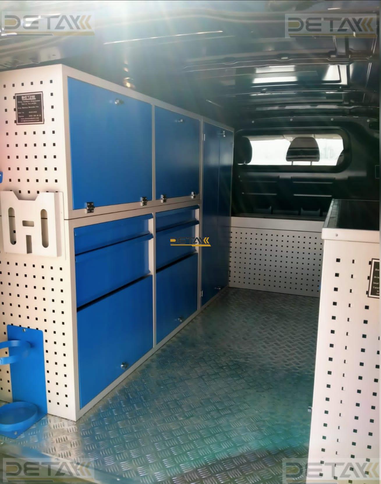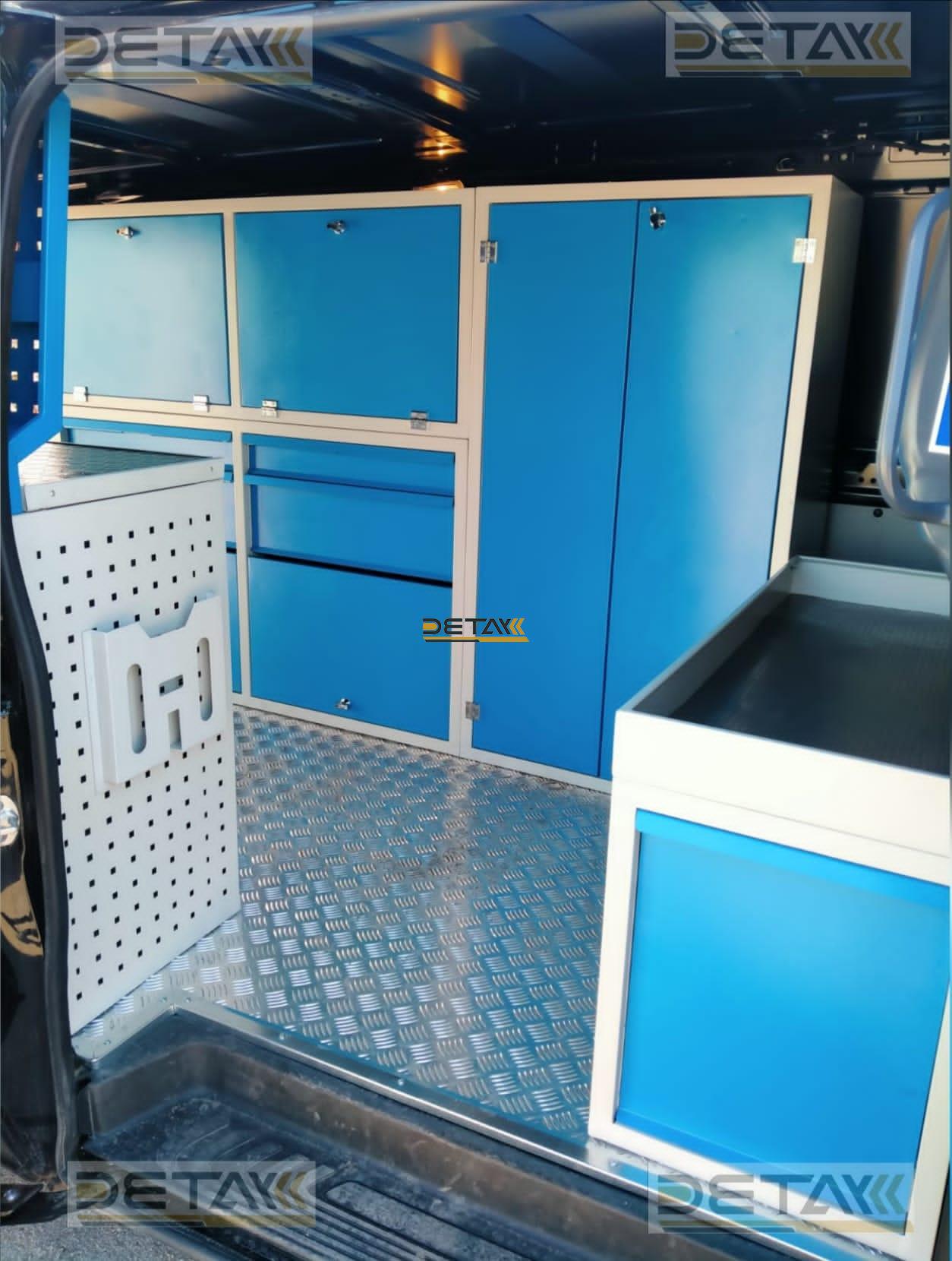 Bakım onarım için kullandığınız Mercedes Vito araçlarınızın iç kısımları modüler raf çekmeceli dolap ve çalışma tezgahları ile donatılarak gezici bir servis aracına bir nevi seyyar atölyeye dönüştürülmektedir.