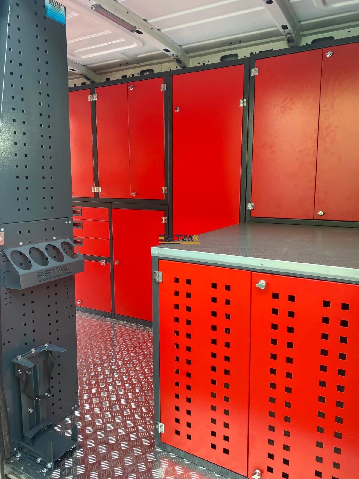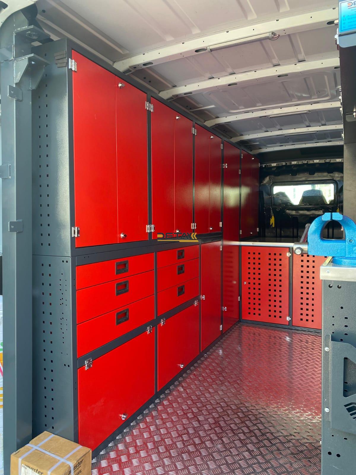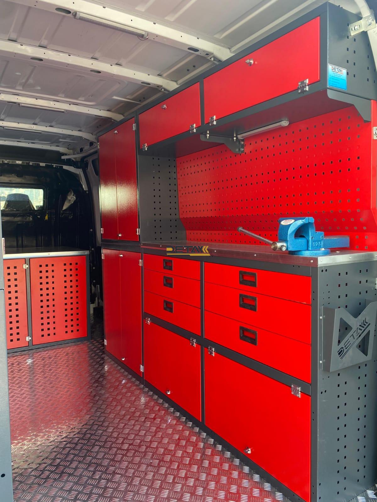 Bakım onarım için kullandığınız Renault Master Yol Yardım Bakım Onarım Aracı’nın iç kısımları modüler raf çekmeceli dolap ve çalışma tezgahları ile donatılarak gezici bir servis aracına bir nevi seyyar atölyeye dönüştürülmektedir.