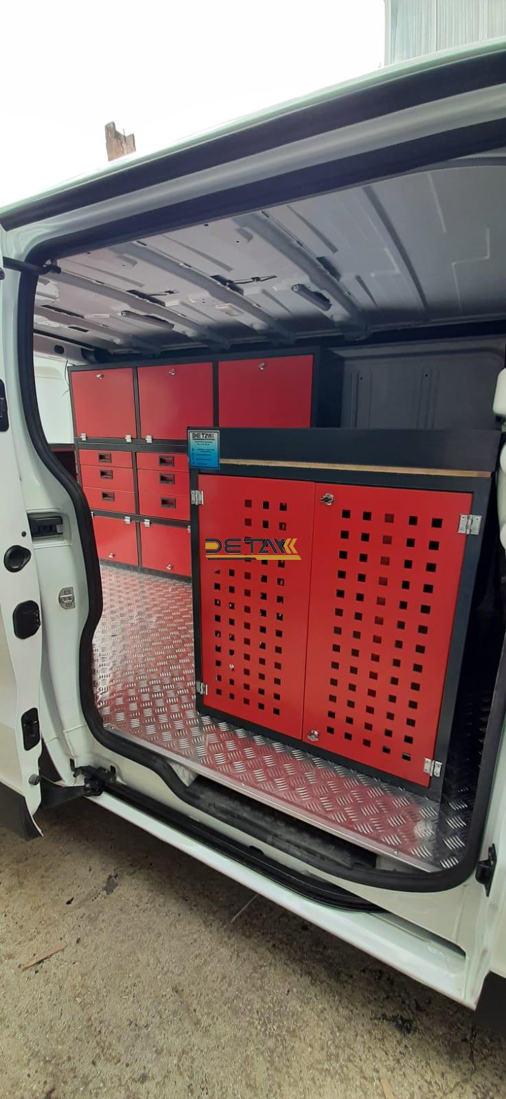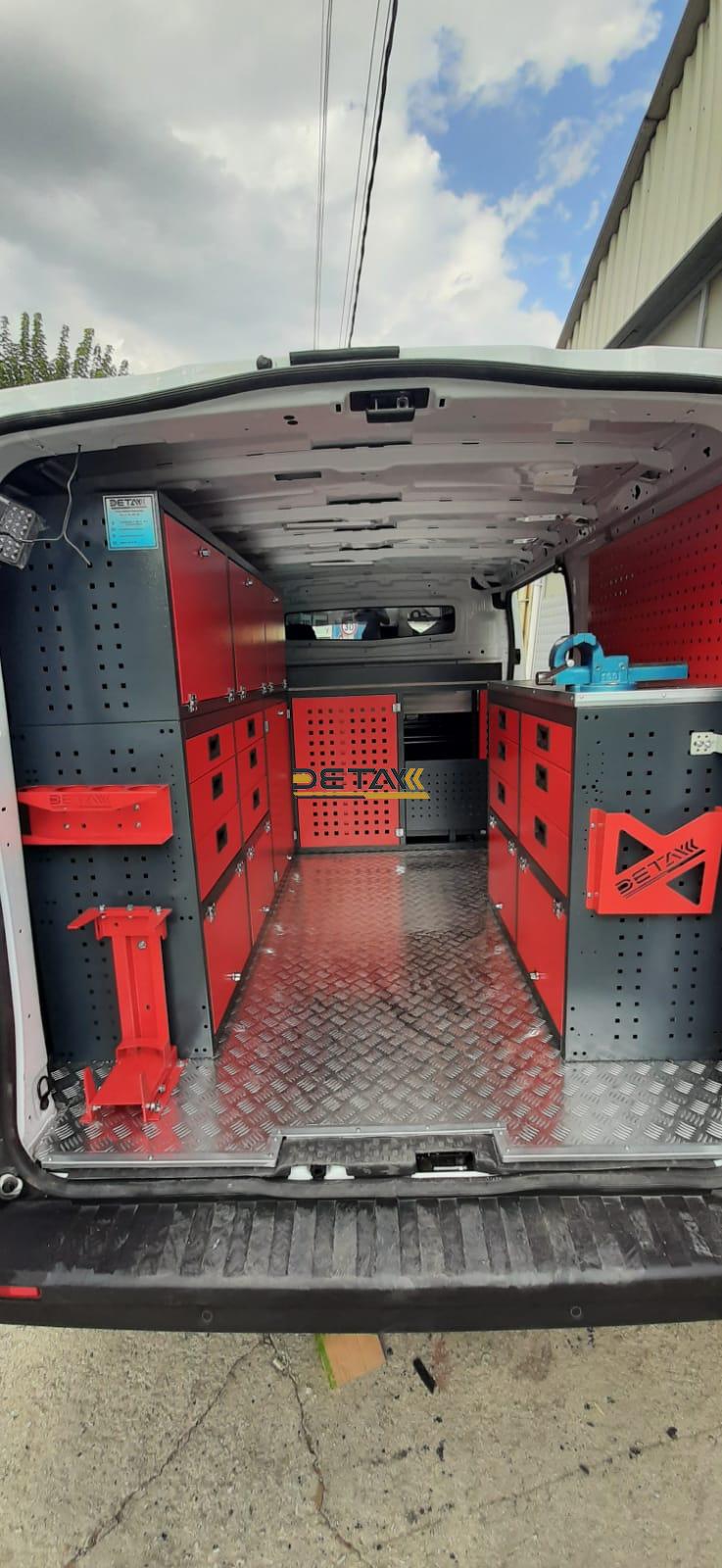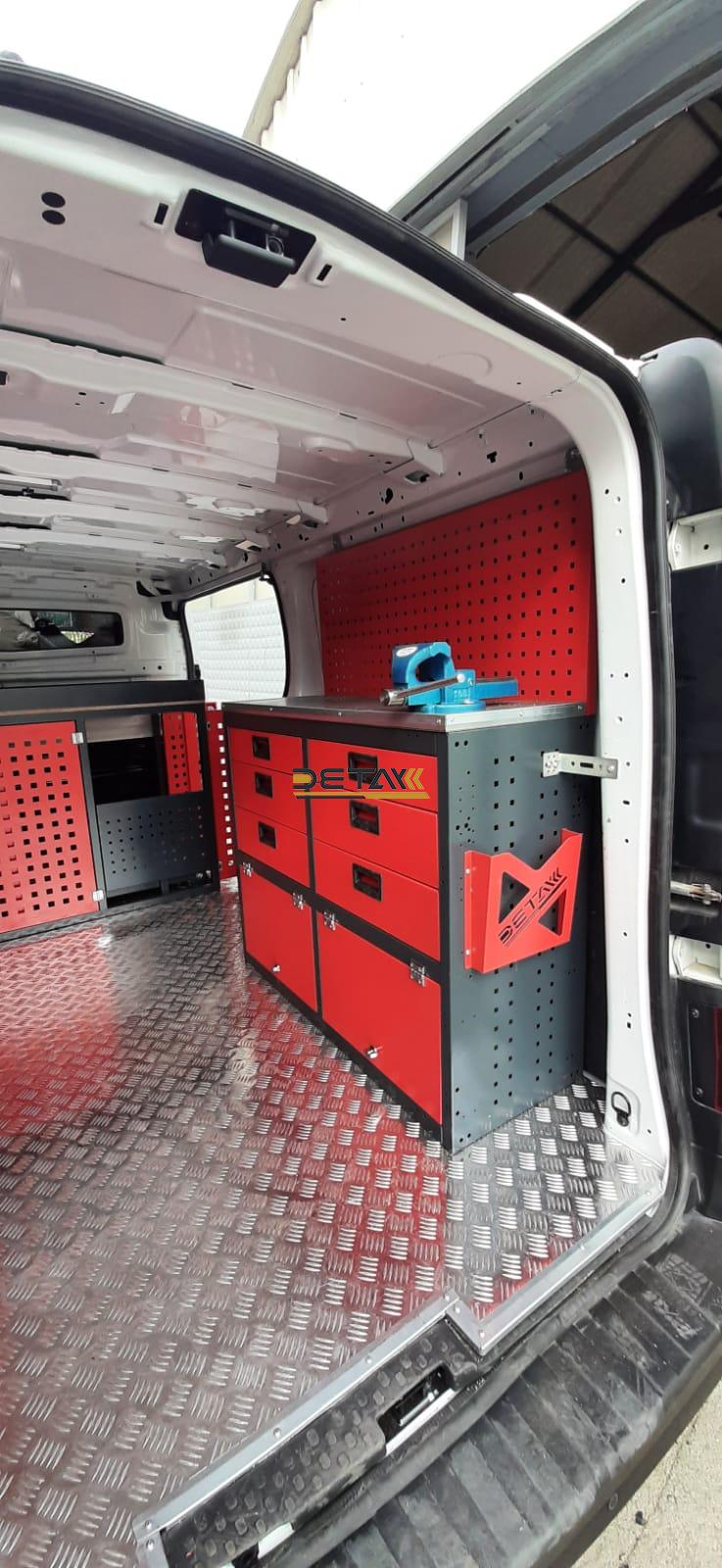 Bakım onarım için kullandığınız Renault Trafik Yol Yardım Bakım Onarım Aracı’nın iç kısımları modüler raf çekmeceli dolap ve çalışma tezgahları ile donatılarak  gezici bir servis aracına bir nevi seyyar atölyeye dönüştürülmektedir.