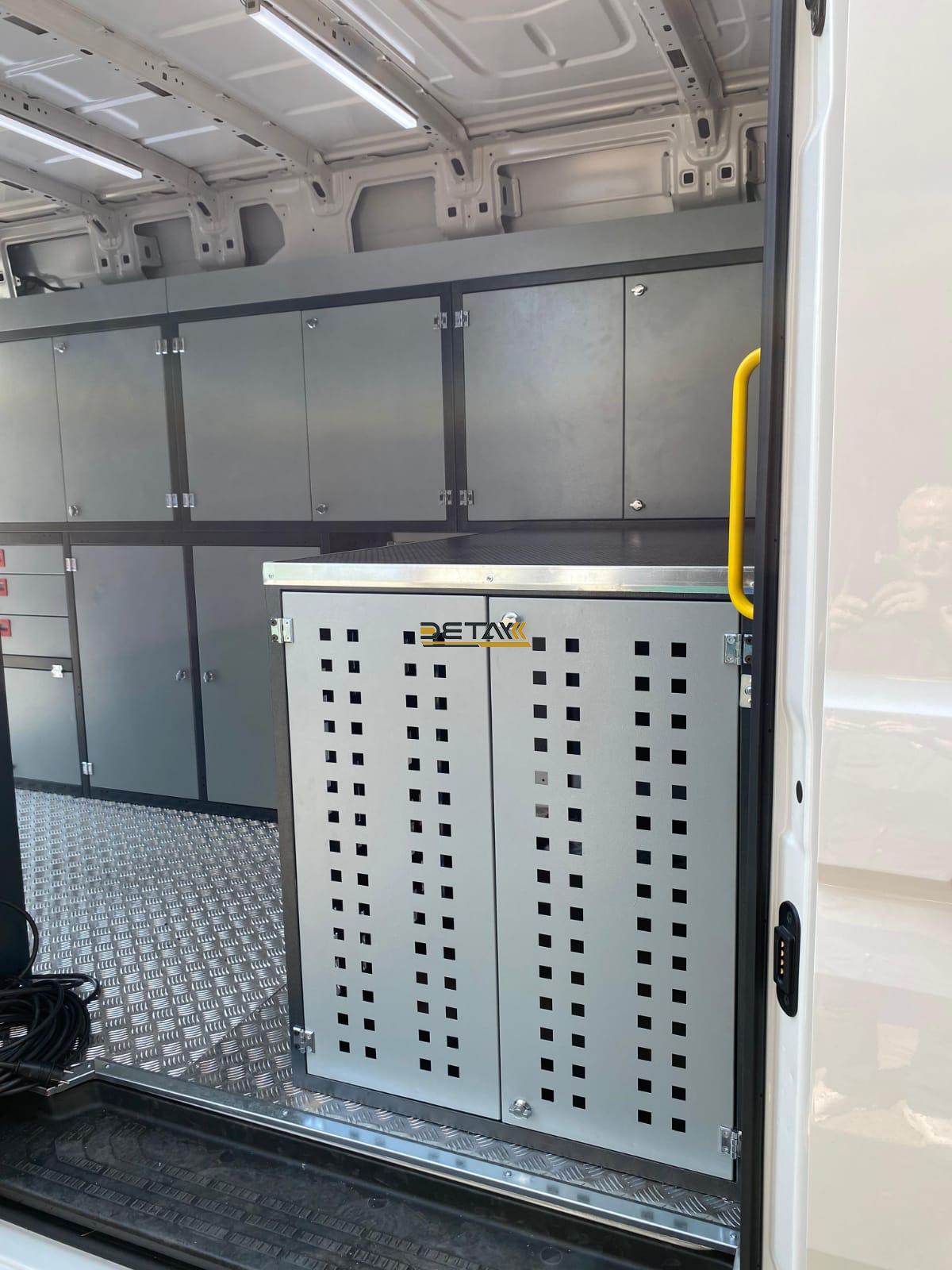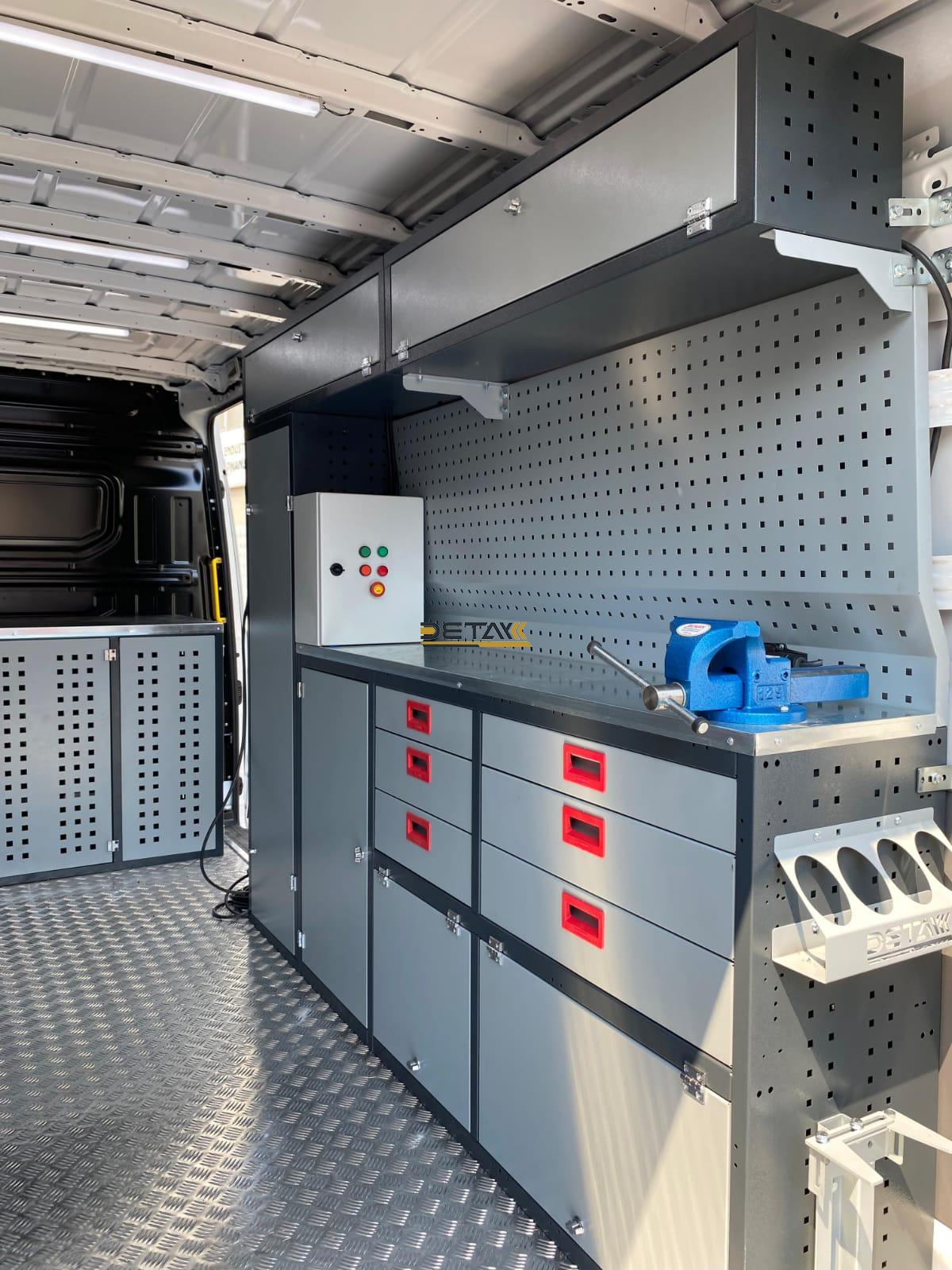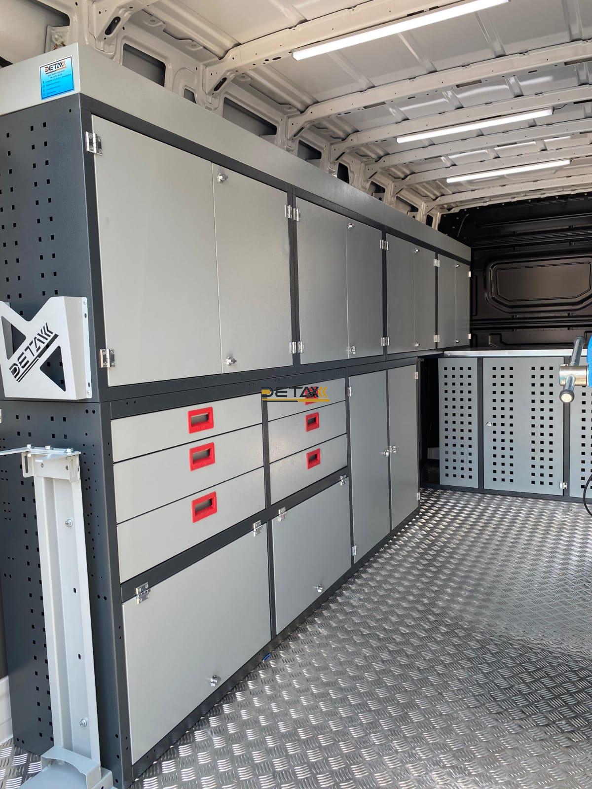 Bakım onarım için kullandığınız Volkswagen Crafter Mobil Servis Aracı’nın iç kısımları modüler raf çekmeceli dolap ve çalışma tezgahları ile donatılarak gezici bir servis aracına bir nevi seyyar atölyeye dönüştürülmektedir.