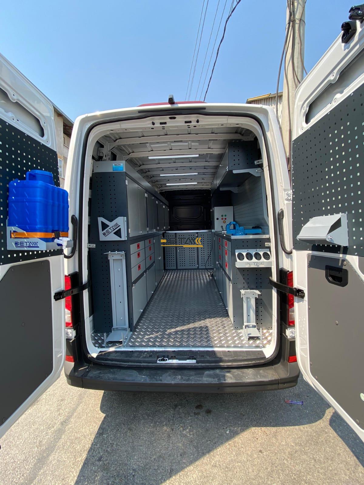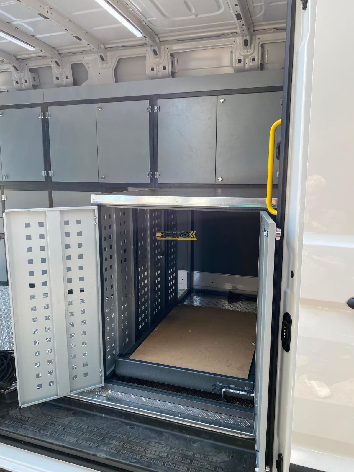 Araç zeminine isteğe göre mdf yada mdf üzeri aliminyum kaplama araç içi duvarlarına aliminyum giydirme dolap ve rafların olduğu bölümde led aydınlatma montajları yapılabilmektedir.