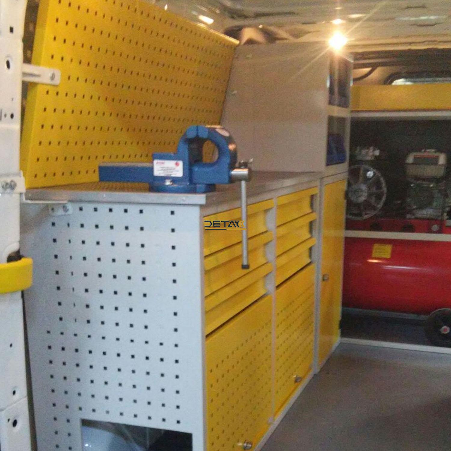 Bakım onarım için kullandığınız araçlarınızın iç kısımları modüler raf çekmeceli dolap ve çalışma tezgahları ile donatılarak gezici bir servis aracına bir nevi seyyar atölyeye dönüştürülmektedir.