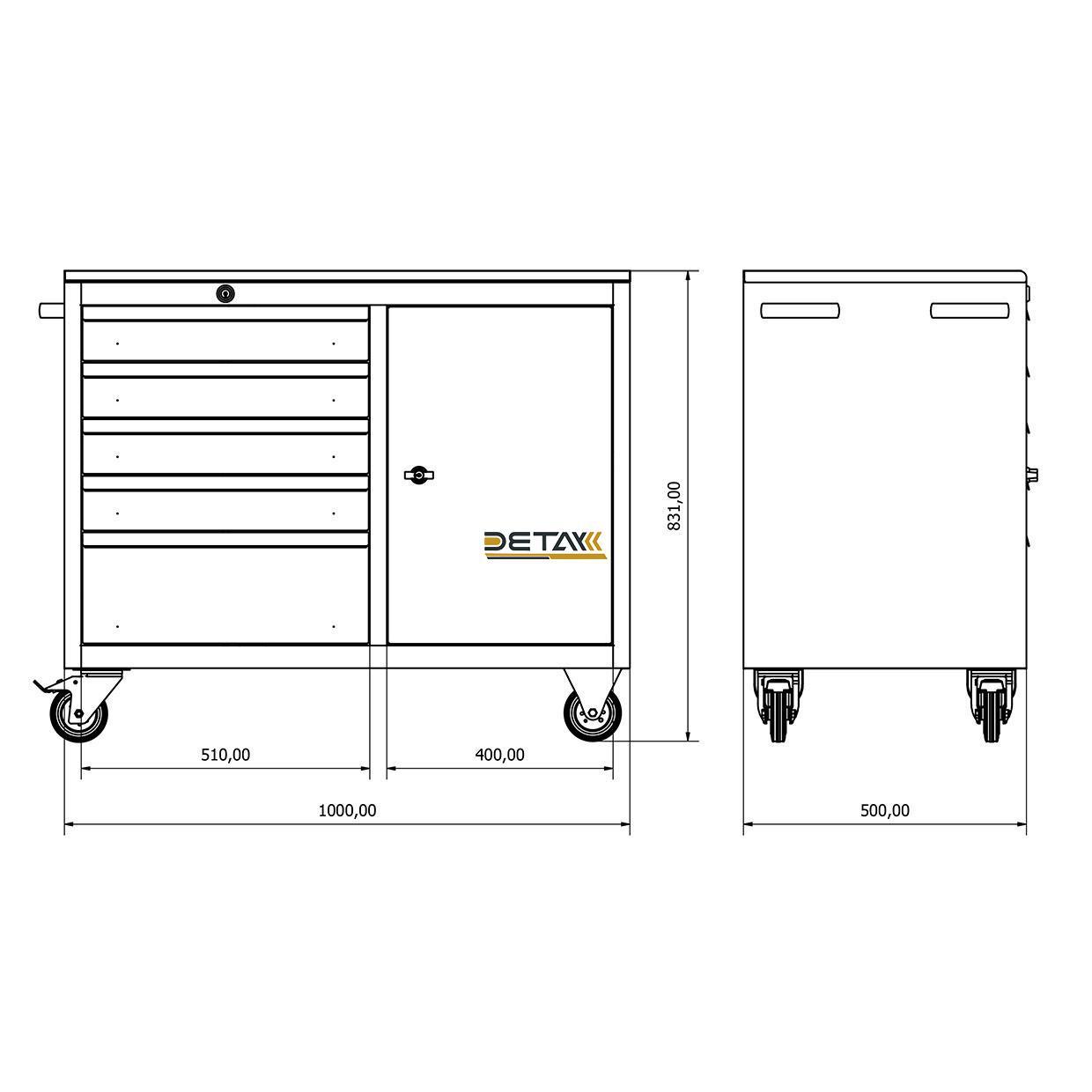 - 4 adet 100’lük çekmece (iç ölçü: H70xW400xD480mm